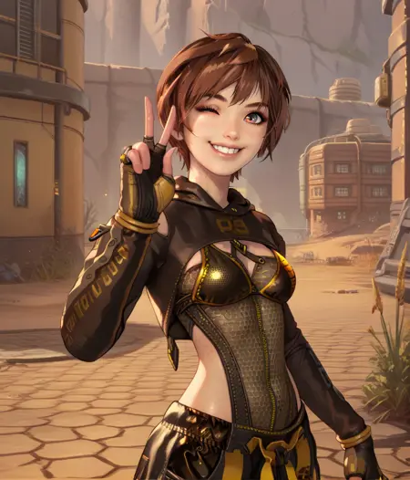 black bodysuit, yellow trim, or orange trim, armor, metal hands, or metal gloves,