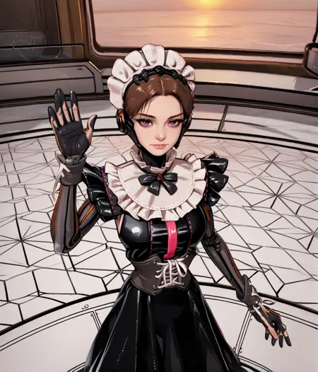 maid, maid headdress, or headdress, black dress, black skirt, or black pants, boots, or heels,