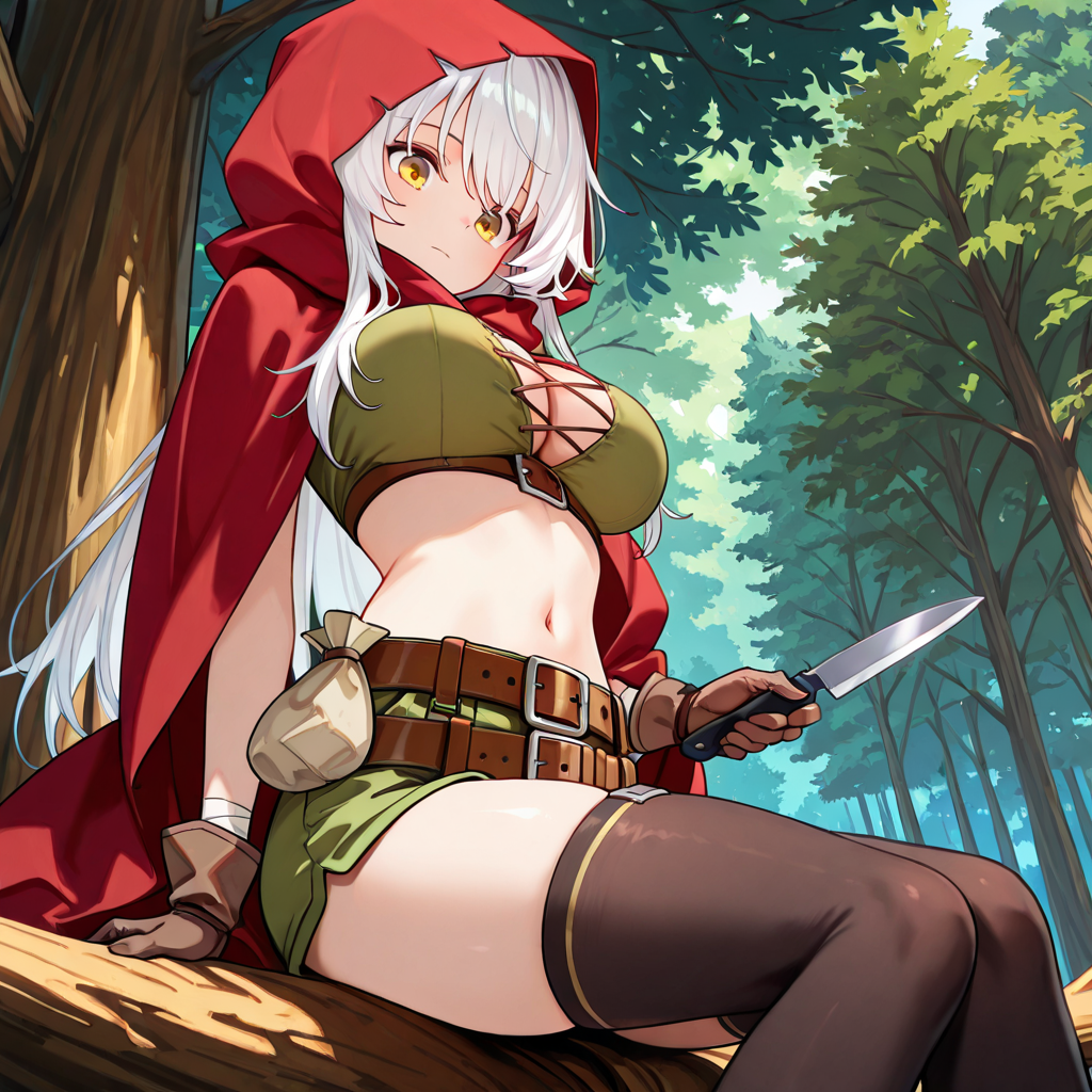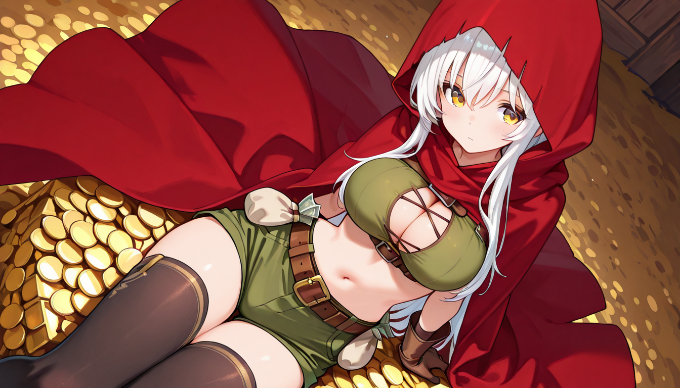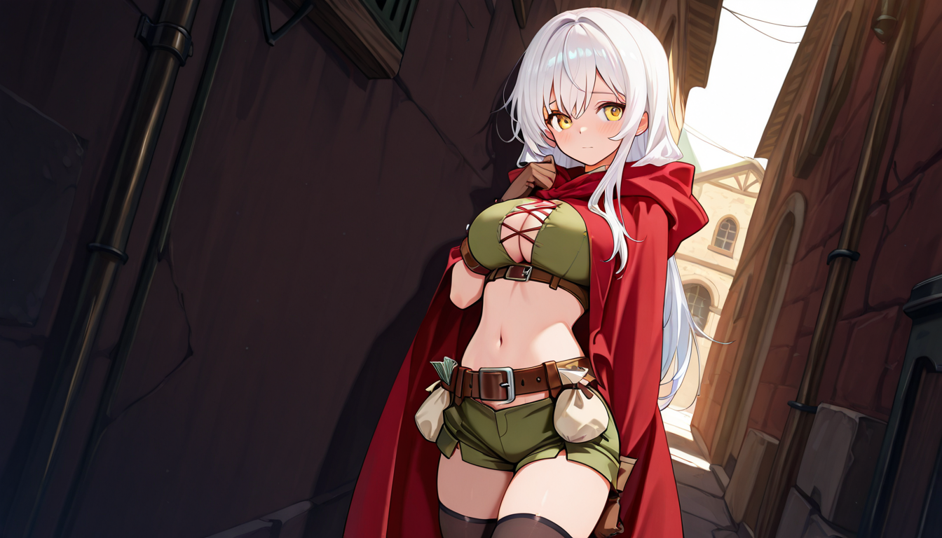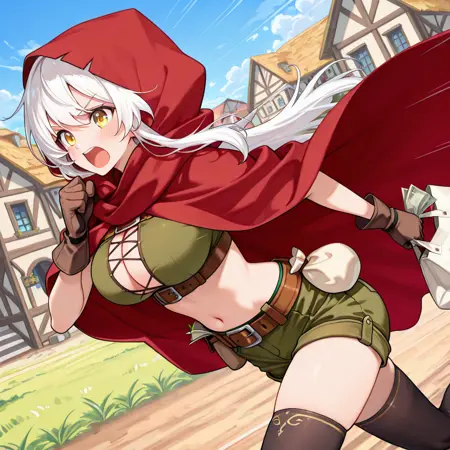 기본 설정: 빨간 망토, 녹색 상의, 녹색 반바지, 갈색 벨트, 갈색 장갑, 검정 스타킹, 돈 주머니