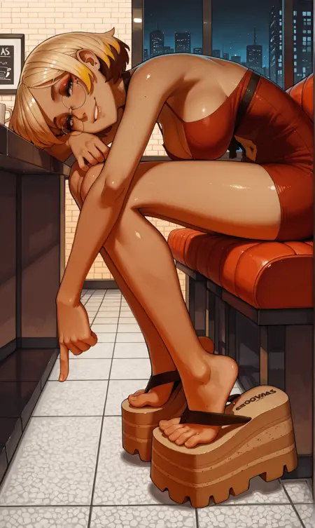 Huge EVA platform with thin plastic straps and some very aggressive tread! Seriously deadly shoes!
