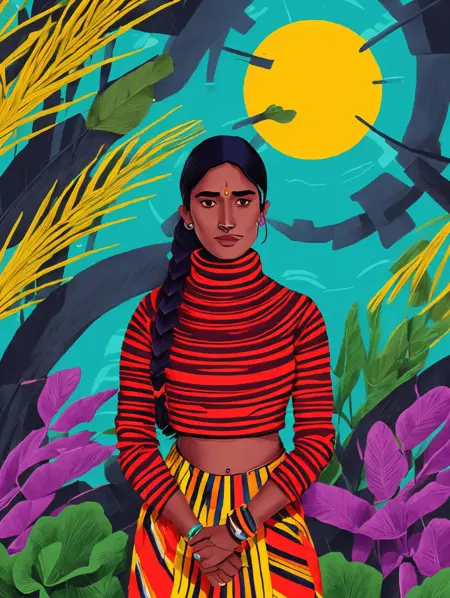 샘플 프롬프트: concept art IND001 style, 55세 태평양 제도 출신 남성(터틀넥 스웨터 복장과 깔끔한 면도 스타일), 디지털 아트, 일러스트레이션 스타일, 회화적, 매트 페인팅, 매우 상세함