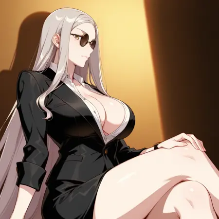 キャラクター:Judge_Kise、長い髪、白髪、波状の髪、サイドロックス、分け目のある前髪、高いポニーテール、黄色い目、目の下のほくろ、目の上のほくろ、