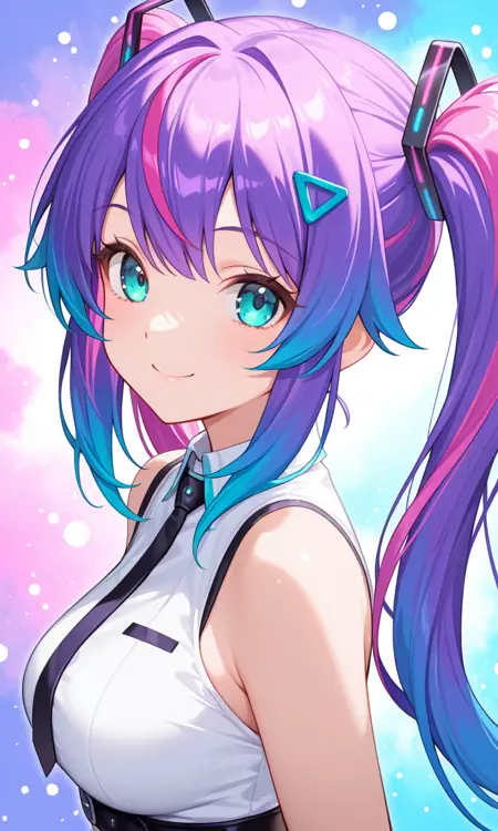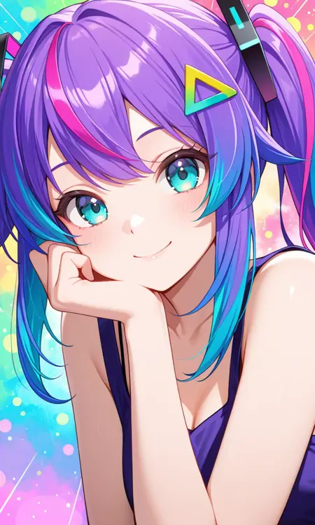 旋律,发饰,多色头发,紫色头发,鬓发,条纹发,三角发饰,双色发,青色眼睛,