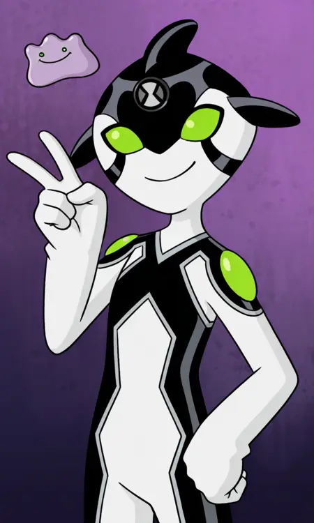 Lora를 테스트하는 도중, 모델이 생성된 보라색 생물을 추가한다는 것을 발견했습니다. 이 생물이 AI가 이미 알고 있는 포켓몬 생물임을 알아냈는데, 이는 벤10의 디토와 이름이 같아서 둘 다 생성된 것입니다.