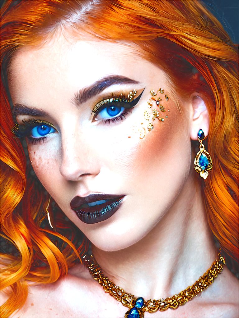 彼女の体は、生きるオベリスクのように彫られた:巨大な胸、ダイヤモンドカットの腹筋、大理石の柱のような太もも、赤い太陽と灰の風に撫でられた肌。タトゥーは二頭筋と斜筋を神聖な回路のように包み、皮膚の下で微かに脈打つ。乳首とへそのピアスは古代の戦闘メダリオンのようにきらめいた。その顔は?穏やか。冷たく。美しく。核の降灰によって彫られた女神。