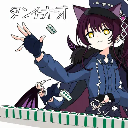 断幺九(タンヤオ)の麻雀手パターンと誇らしげなポーズ。