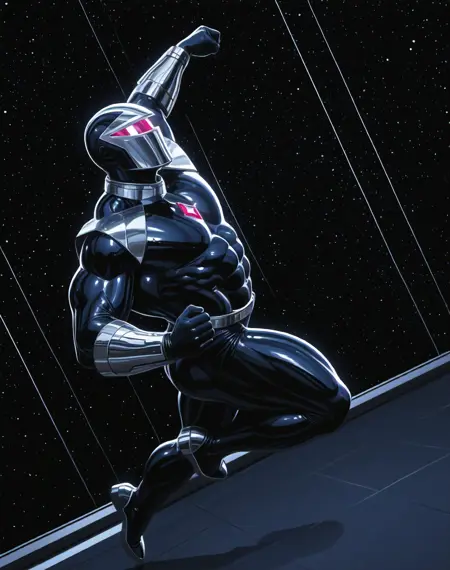 このLoRA向けのプロンプトは(Darkhawk Classic、筋肉質、アーマー)です。