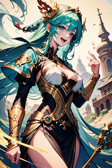"Battle Goddess"는 장비와 무기를 갖춘 이미지를 생성하는 데 도움이 되는 태그로, 캐릭터의 복장에 갑옷 스타일을 부여합니다. 추가 태그를 통해 보다 정밀하게 제어해야 합니다.