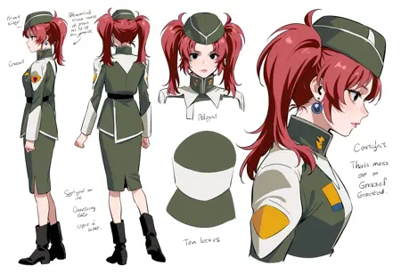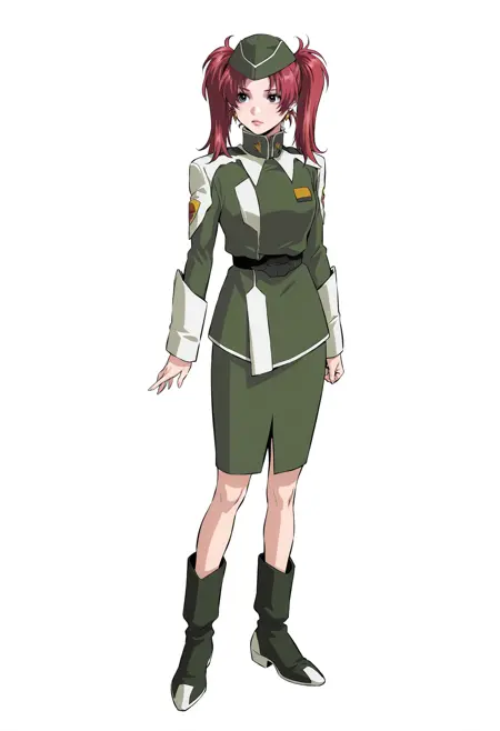 Uniform: twintails,uniform,military uniform,military,skirt,boots,belt,long sleeves,green skirt,earrings,jewelry,pencil skirt, short hair,long hair, hat, garrison cap