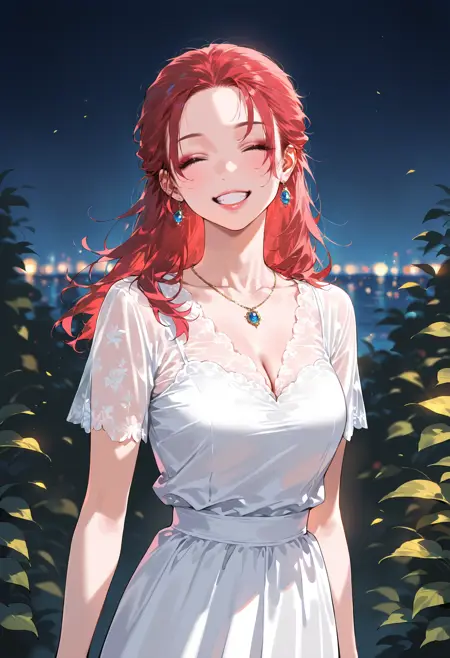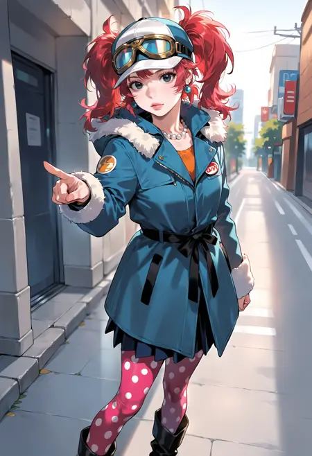 Appearance: 1girl,red hair,black eyes,blue eyes,pink hair