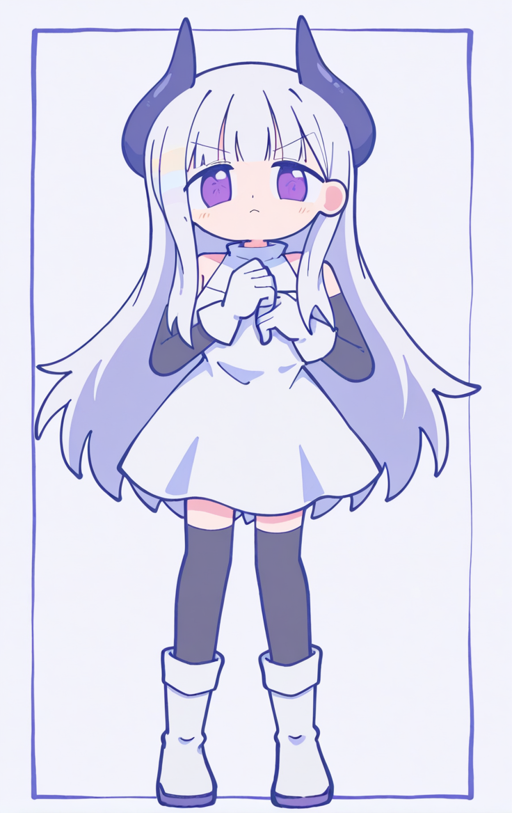 tags: 1girl,white hair, long hair, hair ornament, bangs, purple eyes, collared shirt, blue necktie, black jacket, white socks, skirt, shoes,