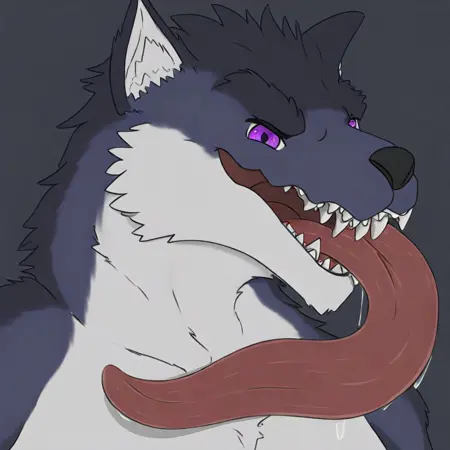 wolf, wolfgirl, black and white fur, purple eyes, wolf ears, black nose, wolf tail, claws, large breasts, three toe feet,
