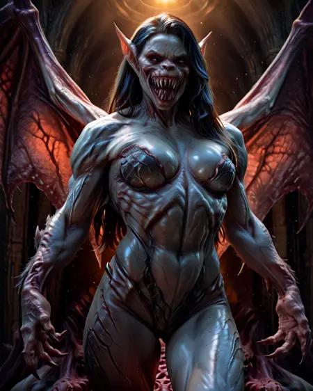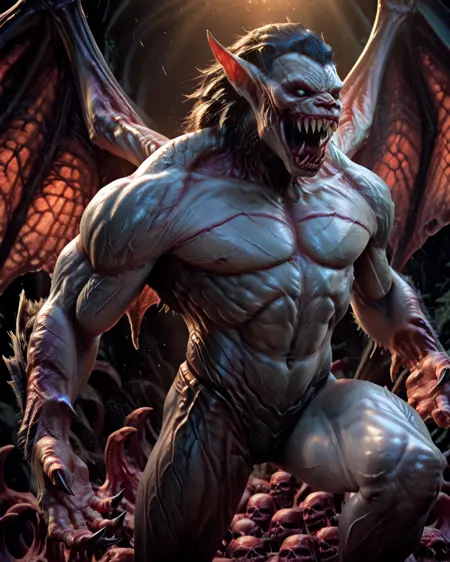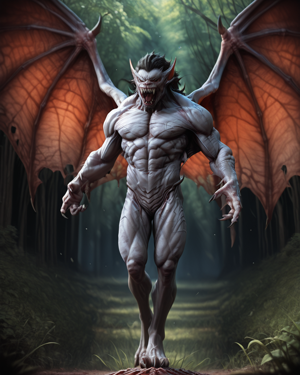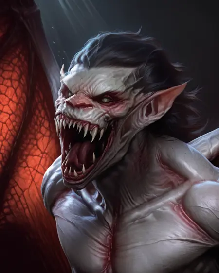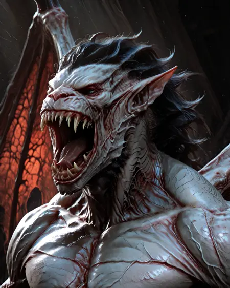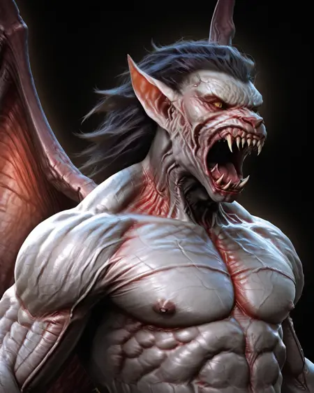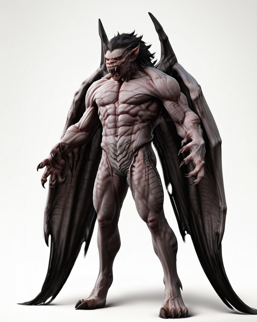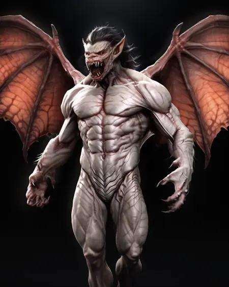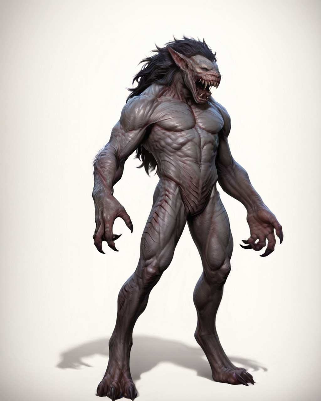 pale skin, tight skin, sharp teeth, claws, muscular, dry muscles, anthro, no human, monster,