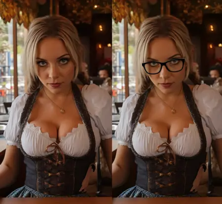 사람들에게 안경을 추가하세요. 꽤 주관적인 선택이지만, 기본 모델보다는 더 현실적입니다. 트리거 "add_glasses"만 사용하세요.