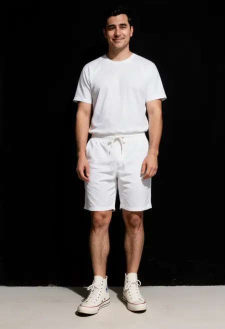 athletic build를 사용하여 근육질이고 운동선수 같은 체형을 연출하세요.