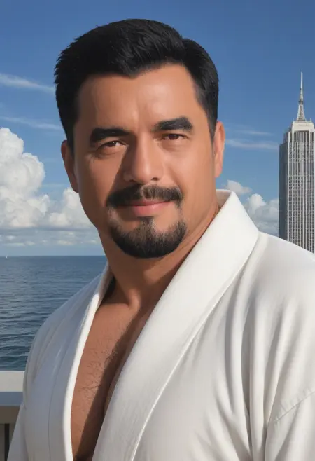 retro artstyle、ink wash painting、thick mustache、beard、stubble和hair slicked back。