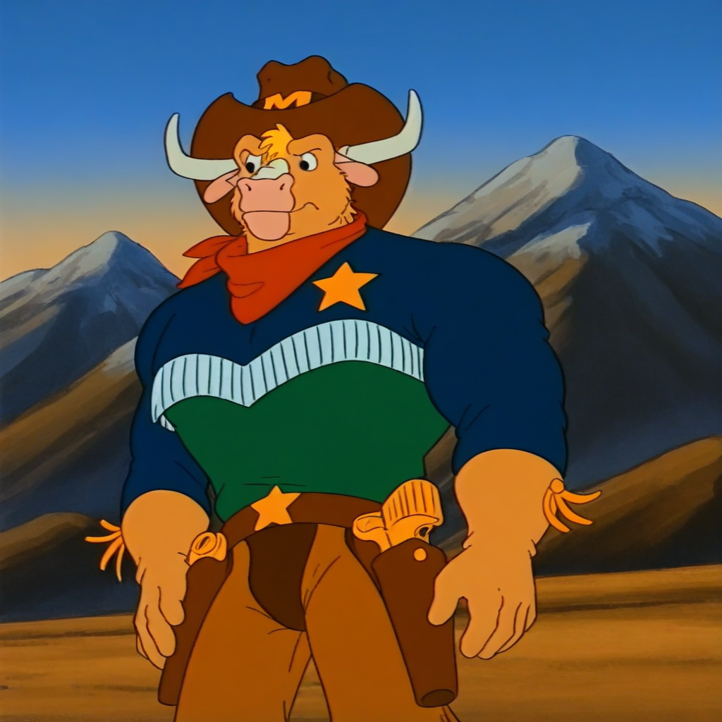 Wild West C.O.W.-Boys of Moo Mesa의 주요 주인공을 학습시킨 LORA입니다. 주요 트리거 단어는: marshal moo montana, 컨트리 백, 큰 수소, 바라, 근육질, 컨트리 백 모자, 파랑과 녹색 복장, 톤 색 바지, 빨간 반바지, 총집, 뿔, 복장의 별입니다. 이 모델을 학습할 때 몇 개의 작은 바라 스타일 이미지를 실험했습니다.