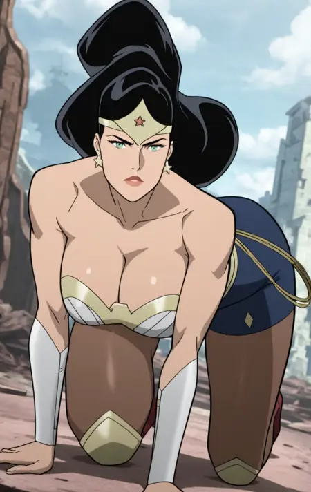 1girl, solo, long hair, breasts, looking at viewer, black hair, jewelry, bare shoulders, green eyes, outdoors, earrings, bodysuit, pantyhose, superhero,wwt0mx,