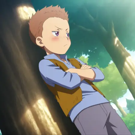 标签:1个男孩,男性焦点,Nash_BC,紫色眼睛,雀斑,棕色头发,短发,蓝色衬衫,棕色背心,灰色裤子,棕色鞋子