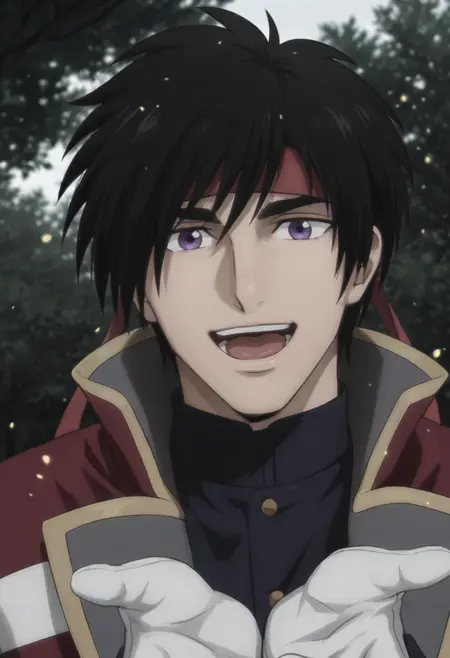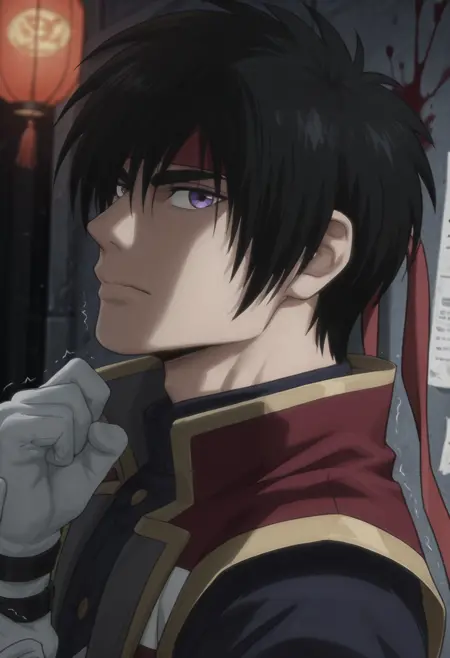 ăżă°: SozoRK, SozoRK_black_hair, SozoRK_purple_eyes, SozoRK_red_headband, SozoRK_black_uniform, SozoRK_maroon_coat, SozoRK_white_arm_wrap, SozoRK_white_gloves, SozoRK_white_sash, SozoRK_black_uniform_pants