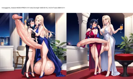 This LyCORIS is used to generate futanari with gigantic penis. If you put it in a long picuture like (1024X768), you can get a massive long cock. You may find the faces are blurry but you can fix it with inpaint or img to img. Adding hyper futanari LyCORIS can improve the texture of penis.