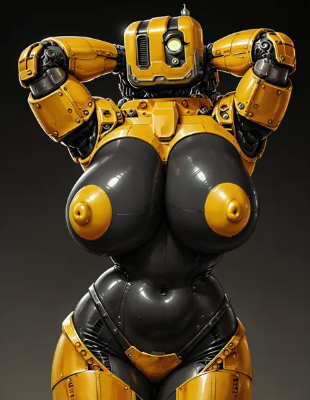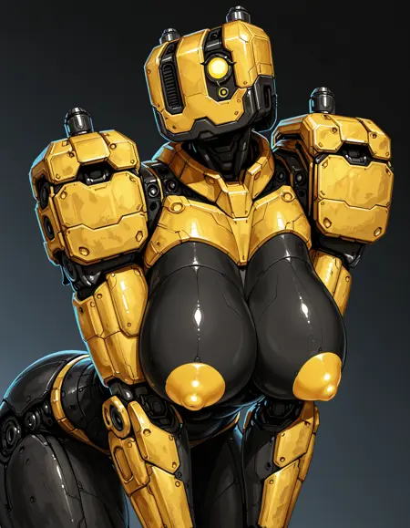 Doretta_DRG, humanoid robot, one-eyed, yellow eye, black body, mecha breast