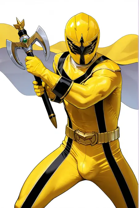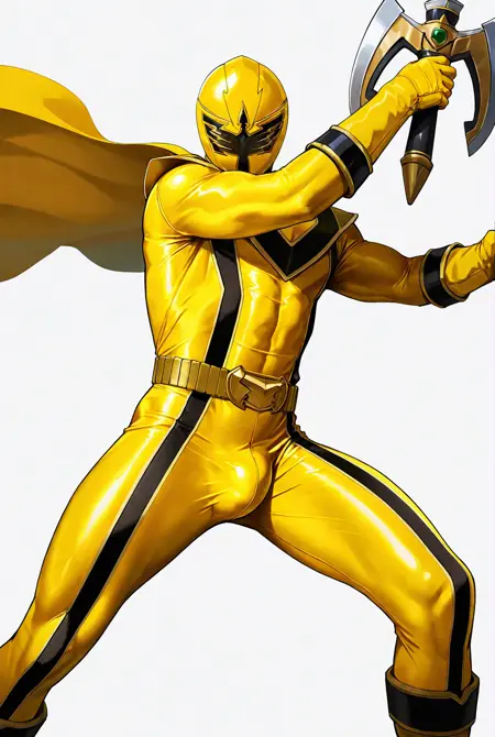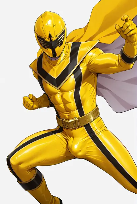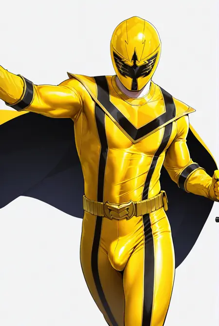 mag1 yellow, bodysuit,mask,gloves,belt,cape,helmet,yellow bodysuit, boots,