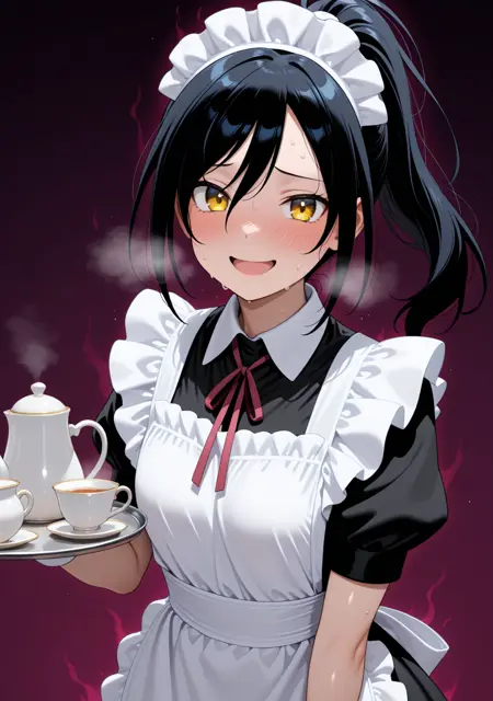 "검은 머리, 포니테일, 앞머리, 노란 눈"