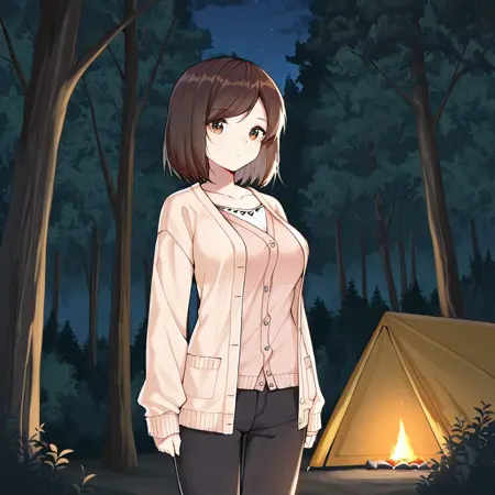 かいこ:HB2、かいこ、茶色の髪、茶色の瞳、短い髪、中程度の胸、流れる前髪