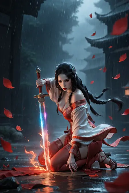 アーマードキャラクターを生成する際に色合いや過剰露出の問題が発生した場合は、ネガティブプロンプトに「高コントラスト」「黄色の光」「過剰露出」といったキーワードを追加してください。
