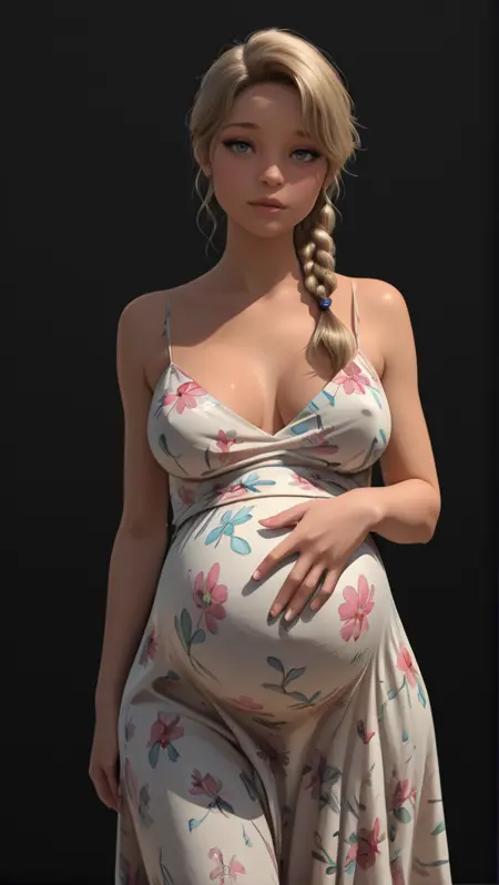 rtmepilogue_pregmia,金色头发,蓝色眼睛,嘴唇,中等胸部,马尾辫,编发,波浪发,口红,眼线,怀孕