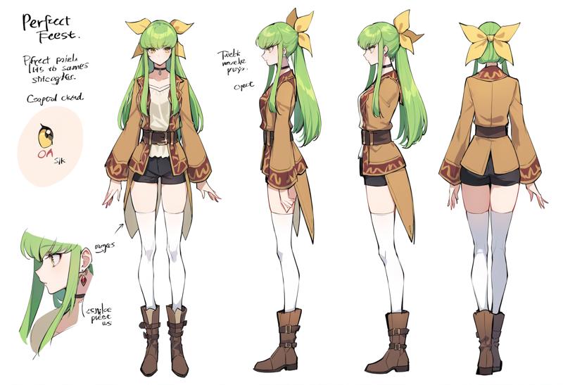 Appearance: 1girl,green hair,yellow eyes,bangs,sidelocks,long hair,very long hair