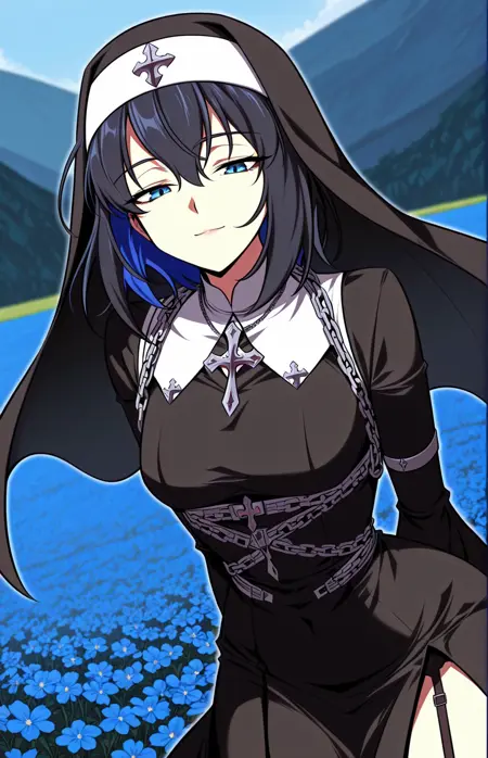 | 학습된 단어 | Hwa, 1 girl, solo, black hair, red inner layer, medium hair, hair between eyes, red eyes,복사됨! Ran, 1 girl, solo, black hair, blue inner layer, medium hair, hair between eyes, blue eyes,복사됨! Hwaran_outfit1, black veil, white headband, silver cross necklace, white chest yoke, black nun habit dress, long sleeves, high side slit, chain harness, thigh-high stockings, garter straps, black loafers복사됨! Hwaran_outfit2, white long-sleeve nightgown, ruffled neckline, loose fit, ankle-length, ruffled hem, gathered cuffs, barefoot, sleepwear복사됨! |