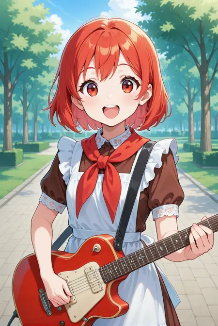 The model is intended for generating girls in Soviet ceremonial school uniforms. The focus was on ensuring that the necktie is visible under the collar and that the school uniform has short sleeves and a brown color. Key word is: ssu