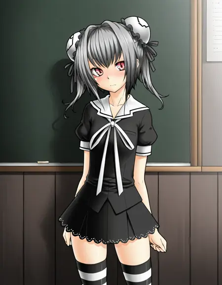 Costume words: skirt, thighhighs, dress, school uniform, striped, striped thighhighs