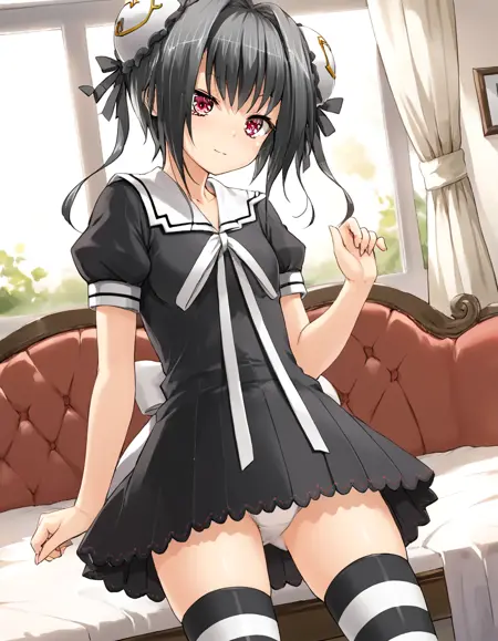 Costume words: skirt, thighhighs, dress, school uniform, striped, striped thighhighs