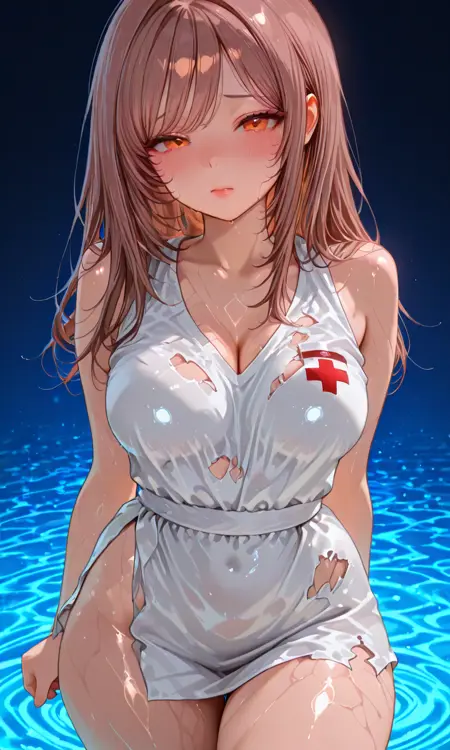rapiBS, 긴 머리, 주황색 눈, 갈색 머리, 큰 가슴,