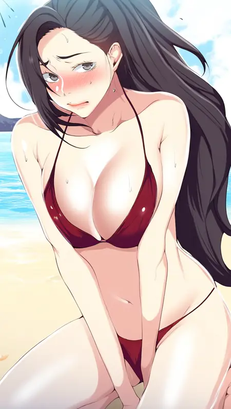 泳装,红色比基尼,肚脐,腹部,乳房,大乳房,乳沟,
