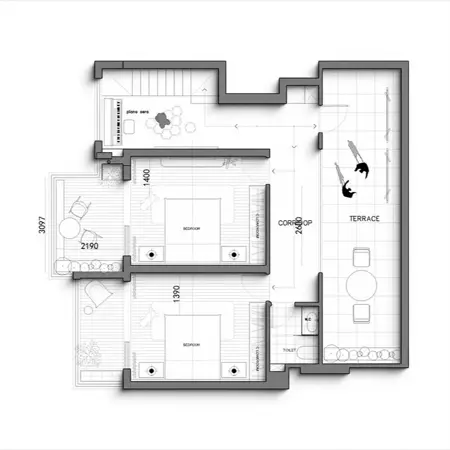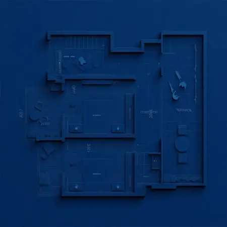 WD, turn this picture into a black and white 3D floor plan.