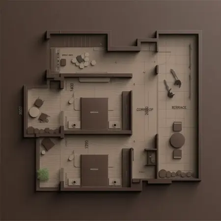 WD、この画像をコーヒー色の3Dプランに変換してください。