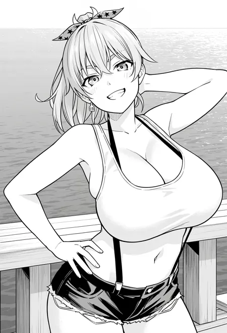 tank top, crop top, suspenders, midriff, navel, short shorts, cutoffs,