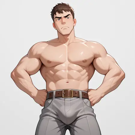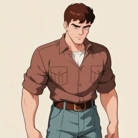 Default appearance: brown shirt, white undershirt, gloves, sleeves rolled up, short sleeves