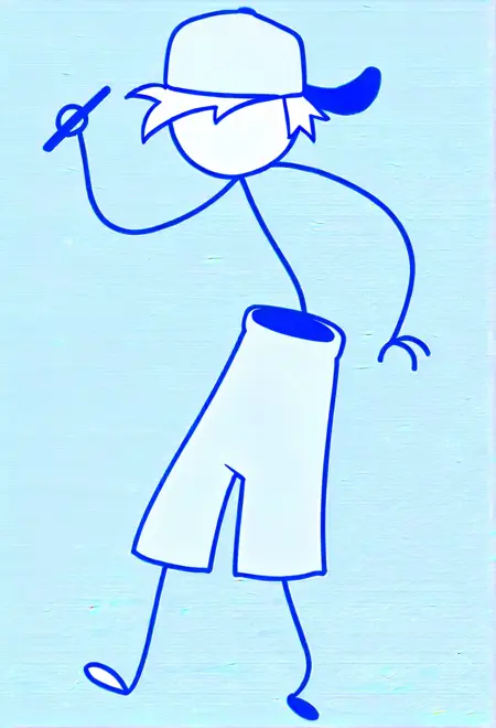 BoyfriendFNFVHS, 1boy, pale white head, faceless, spiky white hair, white backwards cap, blue brim, white oversized shorts, stickman, stick figure, blue stick body