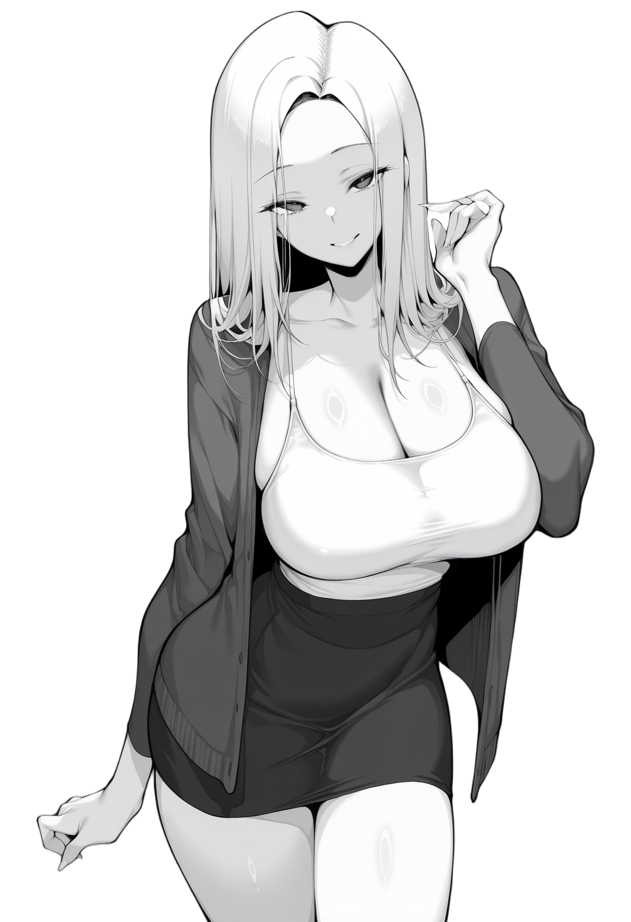 트리거 단어: 단색, 그레이스케일, c-kiyo, 흰 머리, 긴 머리, 큰 가슴,