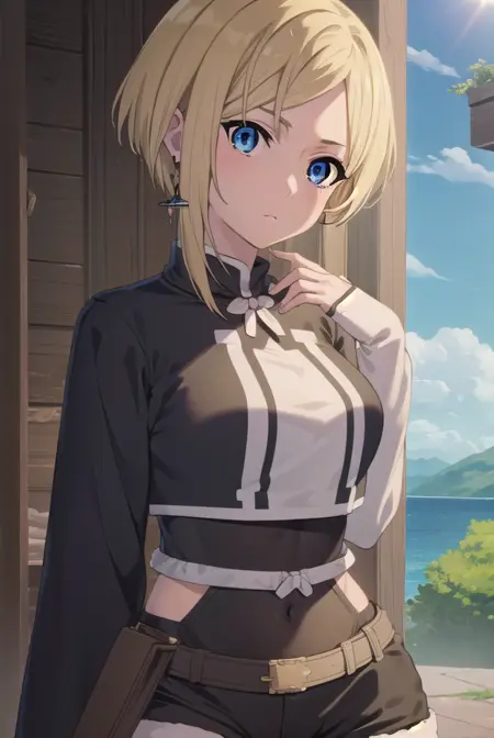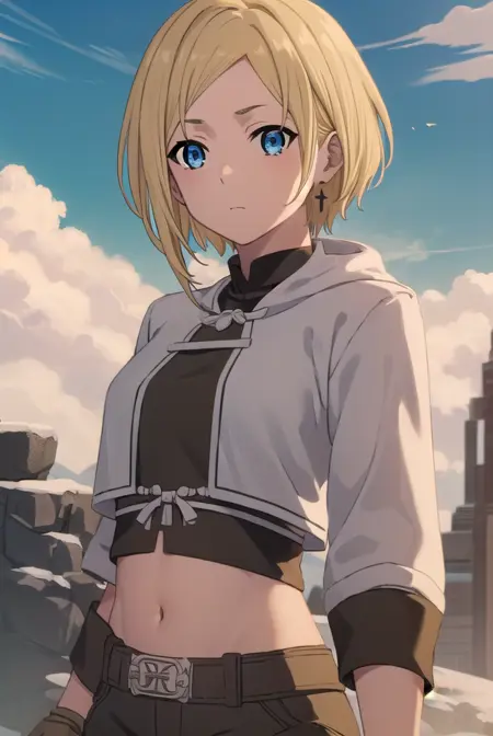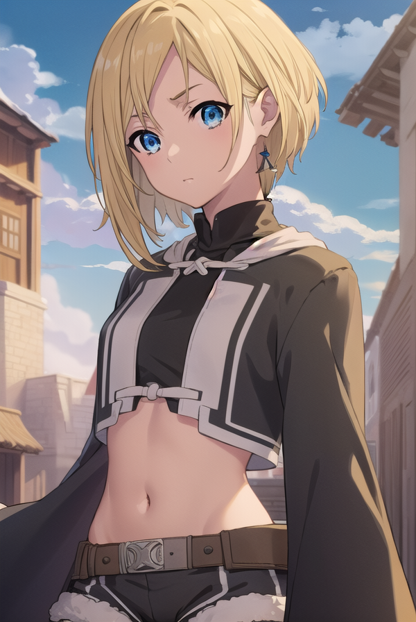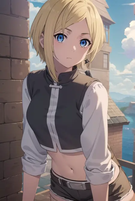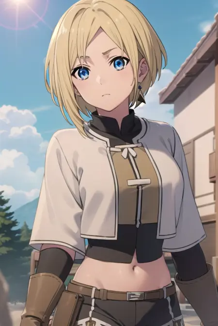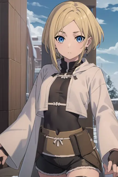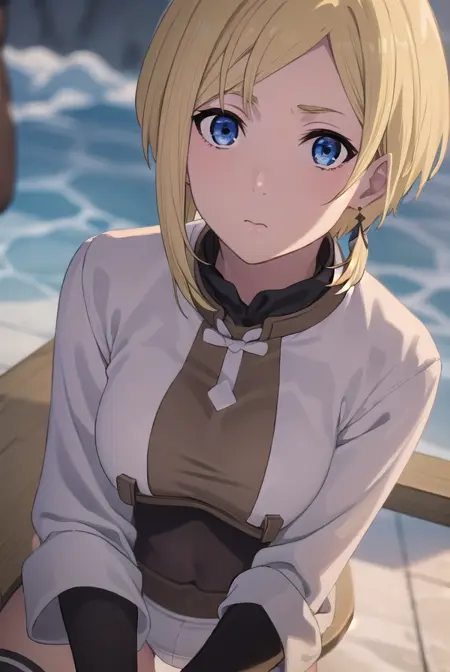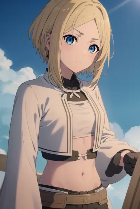 mushoku tensei sara, 短い髪, 青い目, ブロンドの髪,