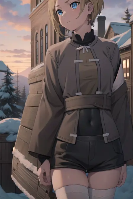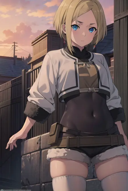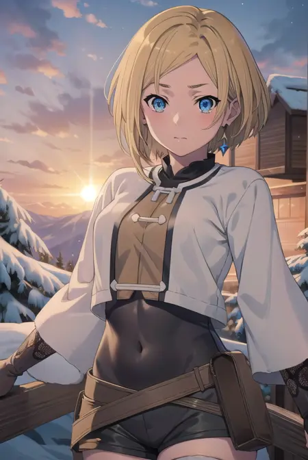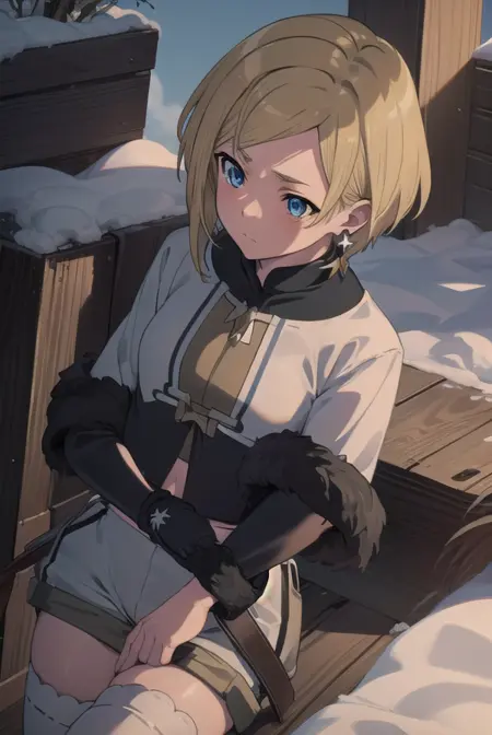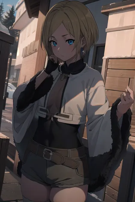 mushoku tensei sara, short hair, blue eyes, blonde hair,