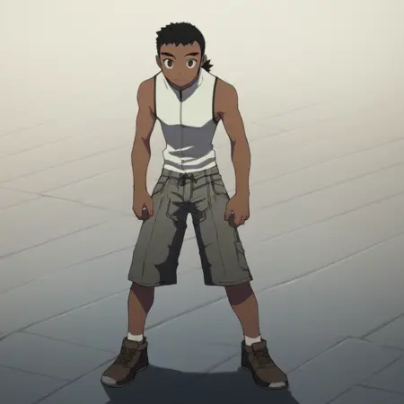 Kenshi Masaki, solo, black hair, dark skin, male focus, 1boy, black eyes,