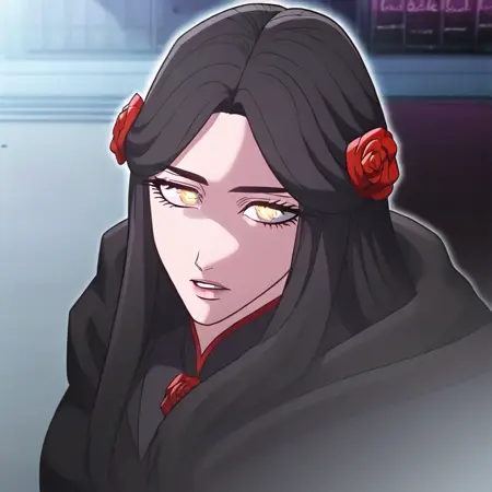 (( lora:gtkpr\_m1c8:1 , gtkpr_m1c8, beautiful yellow eyes, clear eyes, bright pupils, beautiful eyes, beautiful black hair, beautiful long hair, long sidelocks, huge and shaggy breasts, thin waist, wide hips, beautiful skin, natural beauty, extraordinary beautiful woman, attractive woman, super sexy woman, lustful body, sexy woman with seductive obscene body, sensual body, voluptuous body, sexy beauty, long black cloak, red rose hair pins, depatched black collar with red edge and red rose pin, sexy cut-out ninja style dress,))