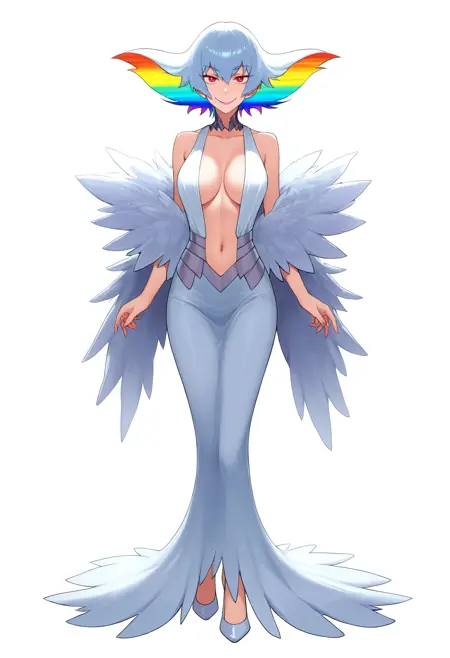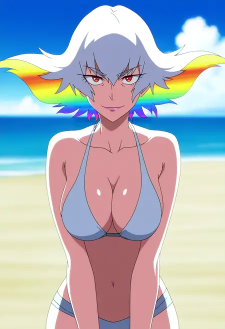 Basic prompts : 1girl, ragyo, rainbow hair, red eyes, short hair, mature female