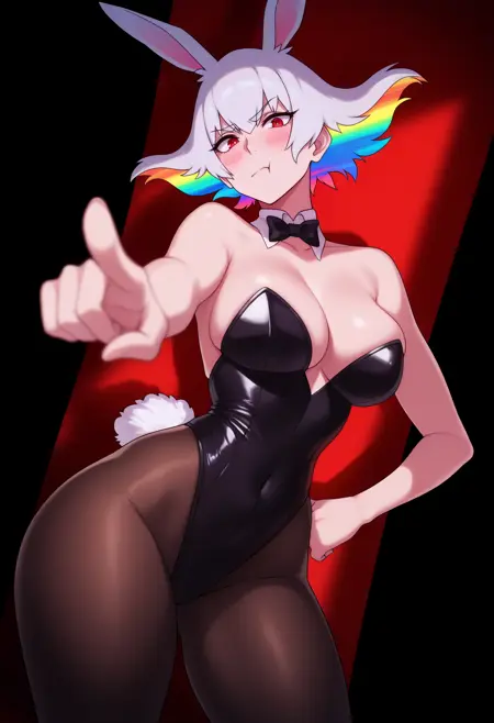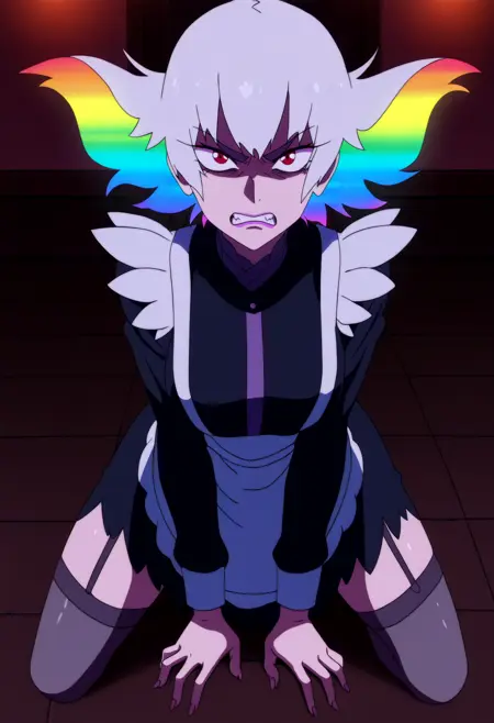 基础提示词:1girl, ragyo, rainbow hair, red eyes, short hair, mature female